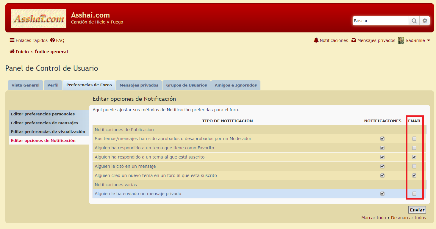 Y no encuentro forma de dejar las notificaciones de asshai pero desactivar los emails. En realidad no sé si existe la opción, pero por si se me ha escapado algo pregunto... :ns: